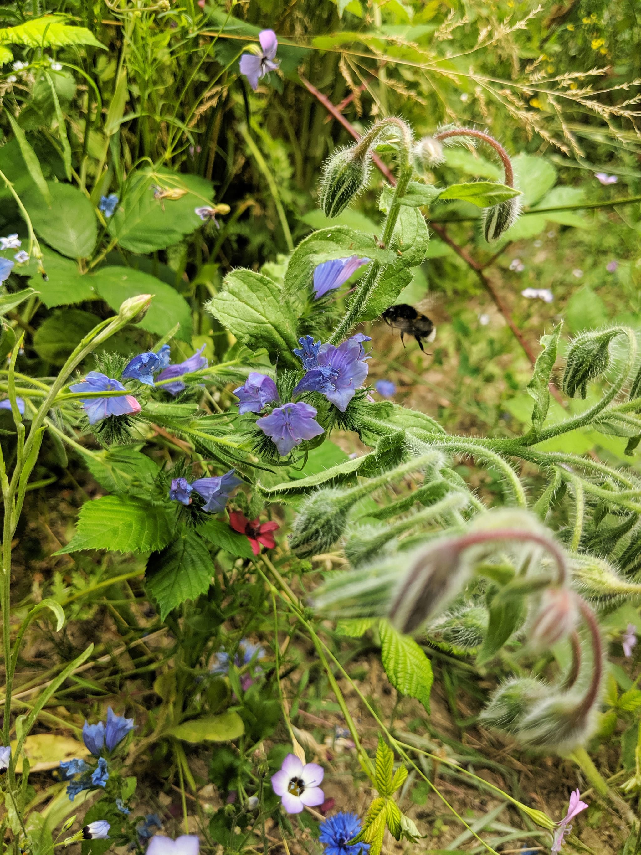 Hummel an blauer Traubenhyazinthe